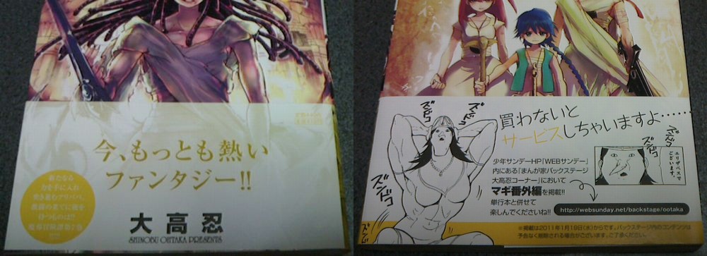 いつもサンデー買ってる書店のマギのコミックスの所にあるPOPが「アニメ化キター!」の文字(+顔文字)だけだったんですが、こんなやる気のねえPOP初めて見た(笑)